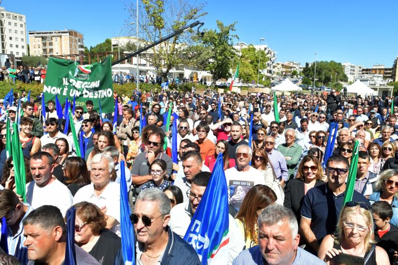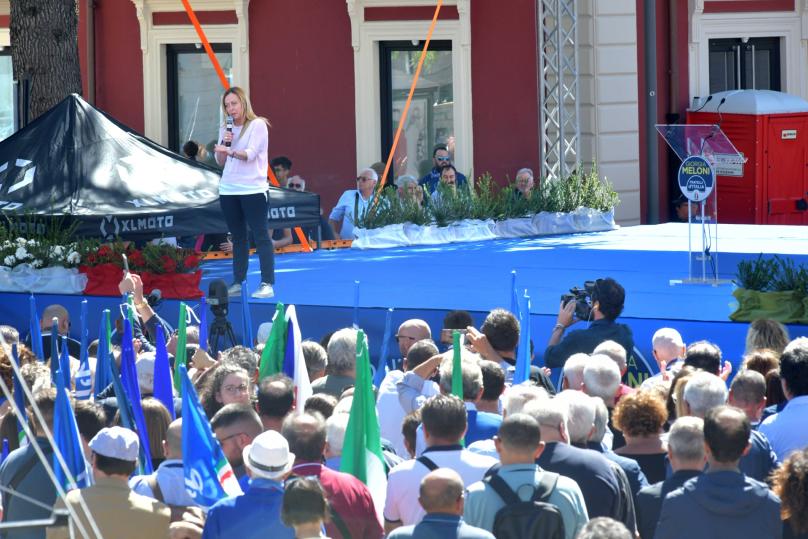 «Lo sapete: sulla guerra sono schieratissima con l’Ucraina». Riferendosi all’Europa, Meloni ha aggiunto che «certamente c'è bisogno di soluzioni comuni, ma l’Italia deve avere una postura diversa in Europa, partendo dal suo interesse nazionale». «Se ci crediamo davvero, il Mezzogiorno può risollevarsi». Così a Matera la leader di Fratelli d’Italia, Giorgia Meloni. «Questa Nazione e questo Mezzogiorno - ha aggiunto - si rimettono in piedi se fai funzionare le cose e se hai progetti ambiziosi». «Il declino non è un destino», ha poi detto Meloni, ripetendo uno slogan lanciato dal pubblico che sta assistendo al comizio in piazza Matteotti, a poca distanza dal centro storico della Città dei Sassi.