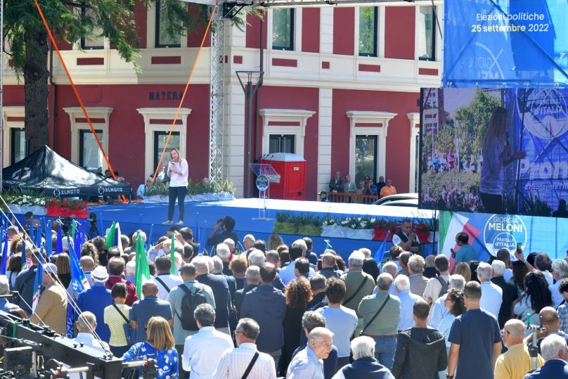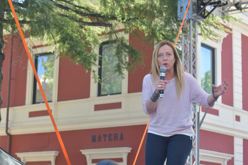 «In questa campagna elettorale non si riesce a parlare di programmi elettorali: è tutto basato sull'odio e sulla paura della sinistra di perdere il proprio sistema di potere». «Loro - ha aggiunto riferendosi alla sinistra - dicono di avere un’egemonia culturale, ma hanno solo un sistema di potere, che vogliono difendere. Noi abbiamo un progetto completamente diverso». «Se vuoi aumentare i salari, devi tagliare le tasse». Così la leader di Fratelli d’Italia, Giorgia Meloni, durante il comizio a Matera. «Vogliamo aumentare i diritti di questa società, alla faccia - ha aggiunto - di una sinistra che non è stata capace». Alcune persone hanno mostrato cartelloni di contestazione alla leader di Fratelli d’Italia, in particolare sulla legge 194 e sulla famiglia tradizionale.