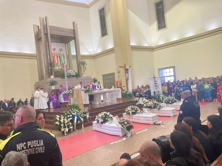 BARI - «Cari Tommaso, Floriana, Alessandro e Lucrezia, avremmo desiderato tutti cedervi un pezzetto della nostra vita, se avesse allungato la vostra presenza tra di noi. Il fiore della giovane età porta la promessa di futuro, che oggi sembra tradita. Il dolore della vostra assenza ci ricorda quanto sia stato bello avervi tra noi. Vi faremmo però un torto a considerare la vostra storia finita: vi immaginiamo nella festa del paradiso e da lì vi chiediamo di aiutarci. Arrivederci Tommaso, arrivederci Floriana, arrivederci Lucrezia e Alessandro: il Signore accolga le vostre anime, riposate in pace. Così sia».