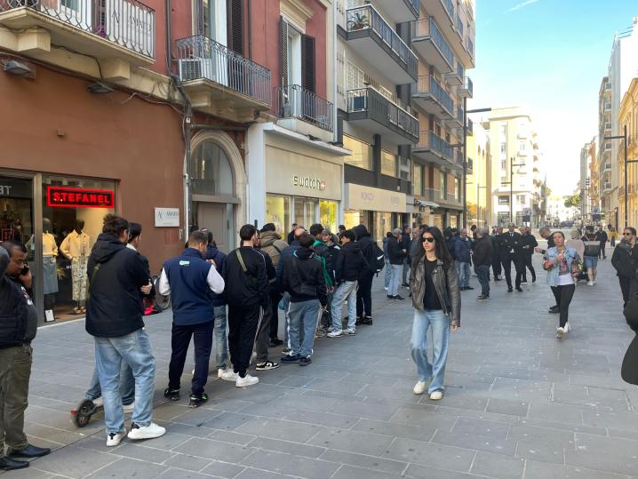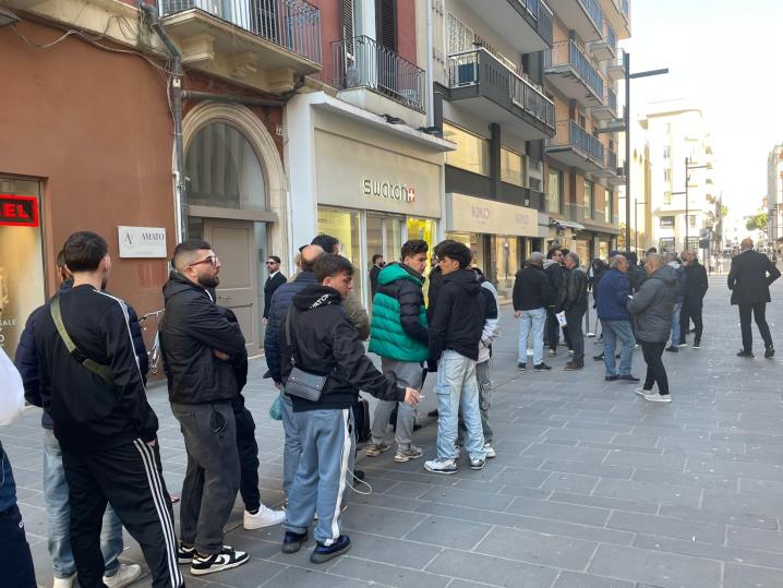 Bari, tutti in fila fuori dal negozio Swatch in via Sparano per il nuovo orologio in collaborazione con Omega