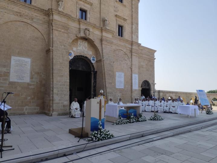 L’occasione è stata la sottoscrizione della «Carta», che in questa nona edizione ha affrontato il tema della forza delle migrazioni, punto conclusivo del cammino di pace che nella notte si è snodato dalla tomba del venerabile don Tonino Bello di Alessano fino alla basilica “De Finibus terrae” di Leuca.