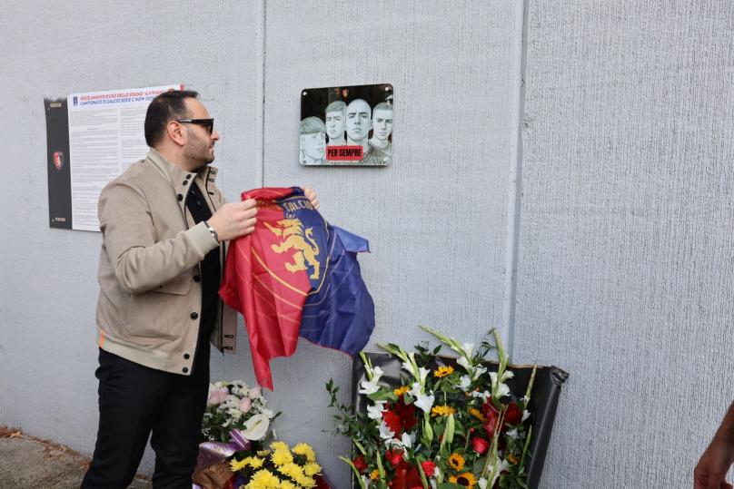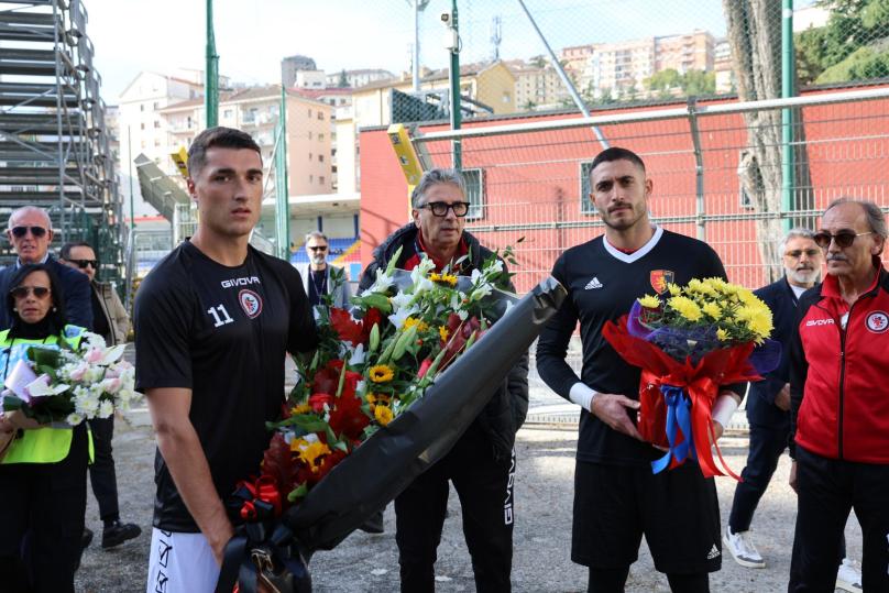 Prima del fischio d’inizio, tra applausi e commozione, è stata scoperta una targa commemorativa dedicata ai quattro ragazzi, installata nel settore ospiti. Il disegno della targa è opera di Carmine Soldo, giovane tifoso del Potenza, che ha voluto lasciare un segno tangibile della memoria e della passione condivisa per il calcio e i colori rossoneri.