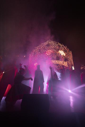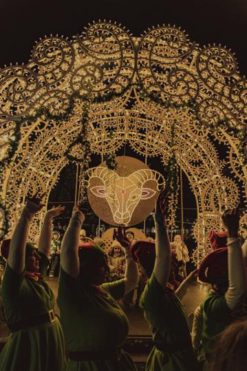 La serata inaugurale è stata arricchita dalle coreografie site specific curate da Annalisa Bellini e dal corpo di ballo della scuola Artinscena, capaci di dialogare con gli scenari luminosi del Parco. Gli Elfi del Borgo hanno distribuito dolci ai bambini, mentre il Trenino dell’Accoglienza ha guidato i visitatori verso la piazza centrale. Suggestiva anche la Parata dei Doni, con fiati, tamburi e campanelli che hanno condotto il pubblico fino alla Cassa Armonica Natalizia, animata da elfi e scenografie luminose.