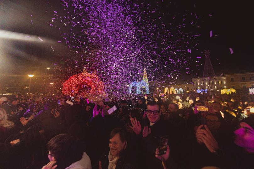 Albero di 22 metri, altalene zodiacali, coreografie, musica, ospiti speciali e un fitto programma fino a febbraio: la città si trasforma in un grande racconto luminoso