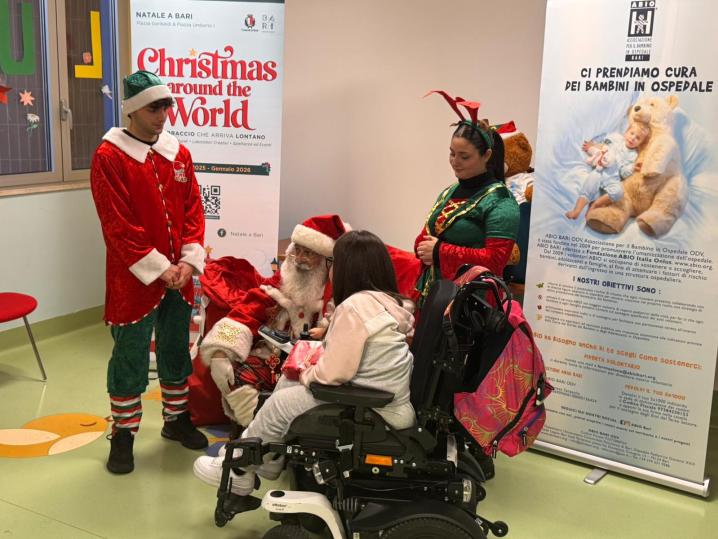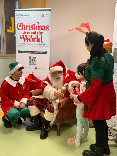 Il progetto Christmas Around the World non è solo arte e integrazione, ma anche sorrisi per chi è più in difficoltà. Babbo Natale e il suo staff sono stati ospiti all'Ospedale Pediatrico Giovanni XXIII di Bari per portare doni, giochi e sorrisi ai bambini, che hanno scritto lettere creando un ponte simbolico con il Villaggio di Natale.