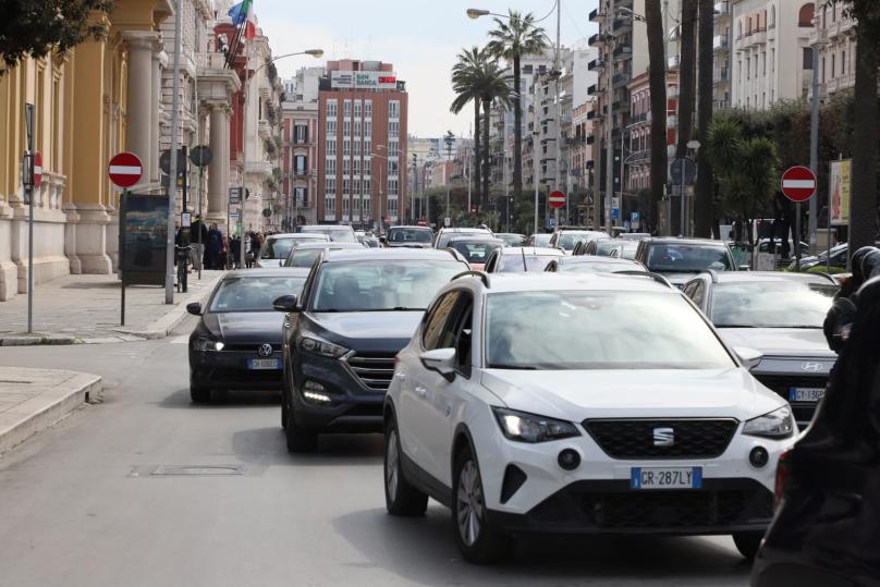 Domenica di sole ma soprattutto di eventi che animano come mai il capoluogo pugliese. E il traffico di auto, tra doppie file e mancanza di vigili, complica non poco la situazione.