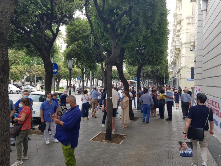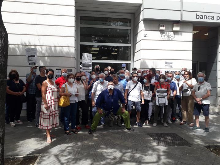 Bari - Una protesta che non è passata inosservata quella di questa mattina da parte delle associazioni dei soci sotto la sede della Popolare di Bari in occasione dell'assemblea virtuale dei soci convocata telematicamente alle 9.