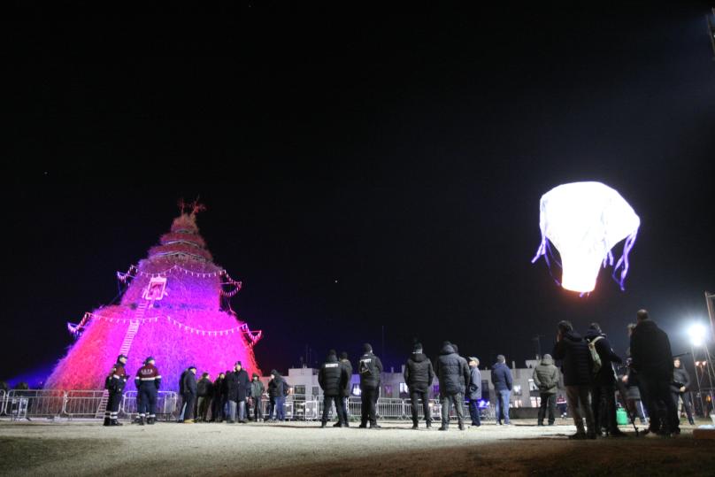 La lunga notte, animata dai concerti dell’Orchestra popolare Notte della Taranta e del rapper Clementino (un secondo «incontro» dopo quello del 2018 sul palco di Melpignano), ha man mano consumato la montagna di 25 metri composta da fascine di tralci di vite. Un emblema amatissimo, realizzato dai volontari del Comitato Festa Sant’Antonio Abate, uomini e donne, in giorni e giorni di certosino lavoro. In questa edizione, lo ricordiamo, la pira era colorata anche di rosso per ricordare le vittime del femminicidio, e in cima c’era un ramo secco d’ulivo per richiamare l’attenzione sull’emergenza Xylella. Un tronco senza vita circondato da tralci di vite e ramoscelli d’ulivo verdi per rappresentare la rinascita della campagna salentina.