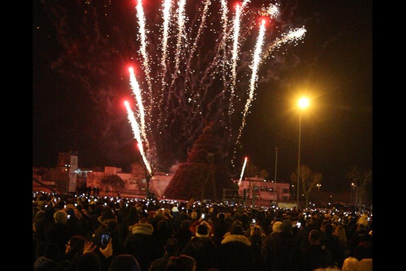 Dopo la messa in posa mattutina sulla Fòcara del quadro realizzato e donato dall’artigiano Giuseppe Salamac, la benedizione degli animali pomeridiana e la processione col pregiato simulacro portato a spalla nelle vie del paese, c’è stata l’accensione affidata alle autorità delle Regione e della cittadina del Nord Salento. Poi, i coreografici fuochi d’artificio della Pirotecnica Salentina hanno invaso e illuminato il cielo di questa terra.