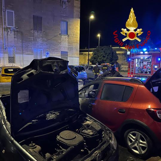 LECCE - Due auto a fuoco in via Sellai, a Lecce. E solo l'intervento dei vigili del fuoco scongiura ulteriori danni.