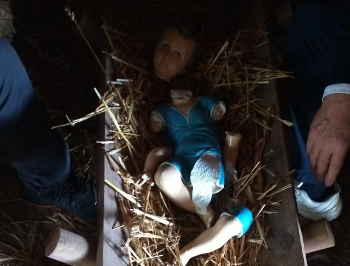 ALLISTE - La statua del Bambinello decapitata. E non solo, perché sono state staccate anche le due braccia ed una gamba. Questa è stata la brutta sorpresa del primo giorno dell'anno per la parrocchia San Quintino di Alliste nel Salento. I vandali hanno deturpato il presepe allestito dalla comunità parrocchiale, ma non hanno certamente spento lo spirito e il sentimento che erano alla base dell'opera. A rendere nota l'azione vandalica è stata la stessa parrocchia sul proprio profilo Facebook.