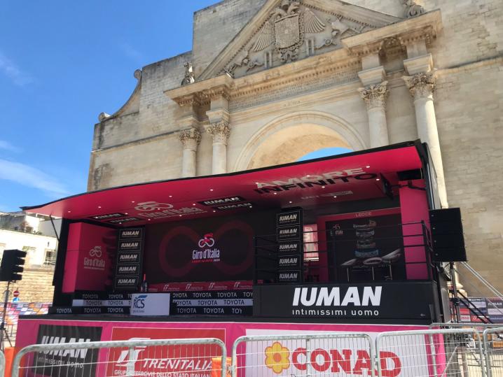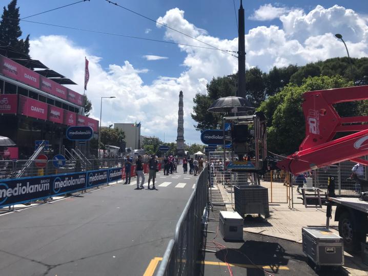 LECCE - Su schermi giganti a Lecce le immagini della partenza della quarta tappa da Alberobello del Giro d'Italia, insieme alle immagini - dice lo speaker - di una delle città più belle del mondo. Sugli schermi anche le immagini di Lecce, città capitale del barocco. Già tanta la gente addossata alle transenne lungo il circuito cittadino, che finisce con l’arrivo in viale Calasso, in viale dell’Università, con l’Obelisco in stile egiziano sullo sfondo. In mostra anche lo striscione del Sindacato studentesco contro il genocidio in Medioriente. L'arrivo a Lecce in volata previsto per le ore 17, in una bella giornata di sole con un po’ di vento di tramontana.