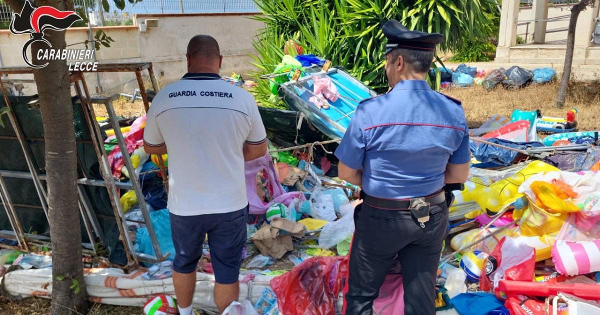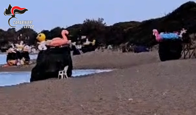 PORTO CESAREO - Nella mattinata di ieri, nell’ambito di un servizio straordinario finalizzato alla tutela del demanio marittimo e alla prevenzione di illeciti in ambito ambientale e commerciale, i Carabinieri della Stazione di Porto Cesareo, con il supporto dei militari dell’11° Reggimento “Puglia” e in stretta collaborazione con la Capitaneria di Porto, hanno condotto una mirata attività di controllo lungo il litorale in località Punta Prosciutto.
