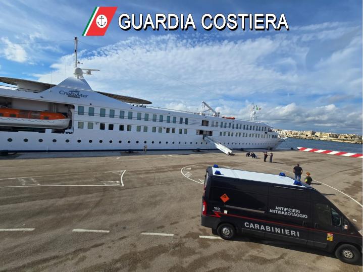 Mattinata movimentata nel porto di Otranto, dove lunedì 3 novembre si è svolta un’esercitazione di sicurezza organizzata dalla Capitaneria di Porto di Gallipoli. Lo scenario prevedeva la segnalazione di un ordigno esplosivo a bordo della nave da crociera La Belle Adriatique, ormeggiata con 166 passeggeri e 49 membri dell’equipaggio.