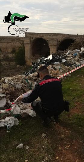 Carabinieri Forestali in azione contro il «rifiuto selvaggio», in località Boncore, non lontano da Porto Cesareo
