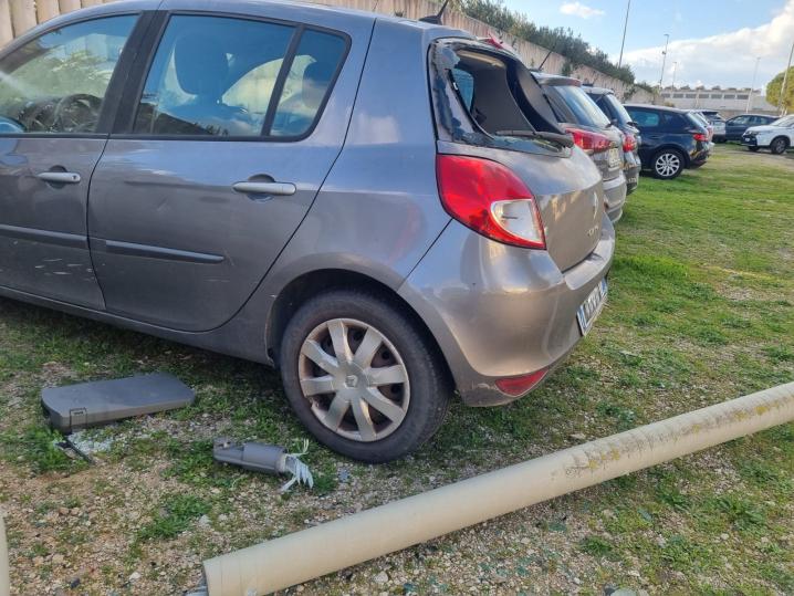 L’impatto è stato violento: la struttura metallica ha colpito la parte posteriore del veicolo, distruggendo completamente il lunotto. Fortunatamente, al momento del crollo, non c’era nessuno a bordo dell’auto né passanti nelle immediate vicinanze. In caso contrario, le conseguenze avrebbero potuto essere ben più gravi.