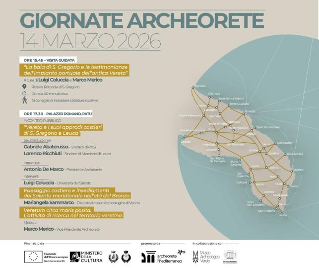 L’iniziativa rientra nel progetto “Storie Meridiane” dei Comuni di Patù e Morciano di Leuca, finanziato dall’Unione Europea e dal Ministero della Cultura nell’ambito del PNRR Cultura. La giornata anticipa anche l’apertura al pubblico della chiesa di Vereto, a partire da domenica 15 marzo, offrendo un’ulteriore occasione per esplorare il patrimonio storico e artistico della zona.