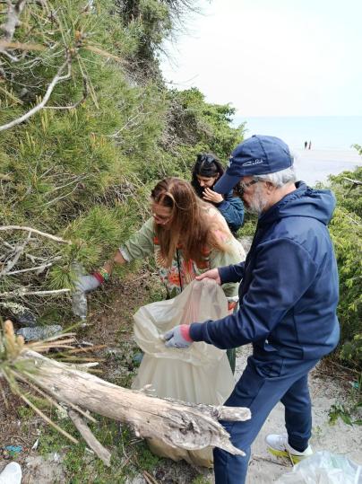 L’artista, che da qualche anno ha preso la residenza nel comune salentino, ha indossato guanti e con un sacco in mano ha partecipato alla pulizia di un tratto di costa, tra San Foca e Torre dell’Orso