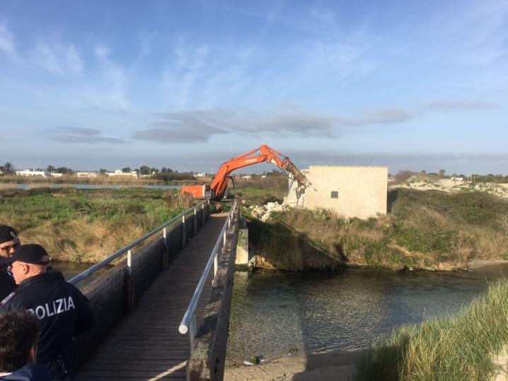 Sono stati demoliti questa mattina quattro fabbricati abusivi, ormai acquisiti al patrimonio del Comune, nella marine leccesi di Torre Chianca e Frigole. In particolare, la demolizione ha riguardato un fabbricato di 54,5 metri quadri a Torre Rinalda, realizzato su una piattaforma di 245 metri quadri; due a Torre Chianca, uno di 54,50 metri quadri e uno di 75, realizzato su piattaforma in cemento di 122 metri quadri, più un garage annesso di 52, ed infino un fabbricato a Frigole di 181 metri quadri. Alle operazione erano presenti anche il sindaco Carlo Salvemini e l’assessore alla Pianificazione territoriale, Rita Miglietta.