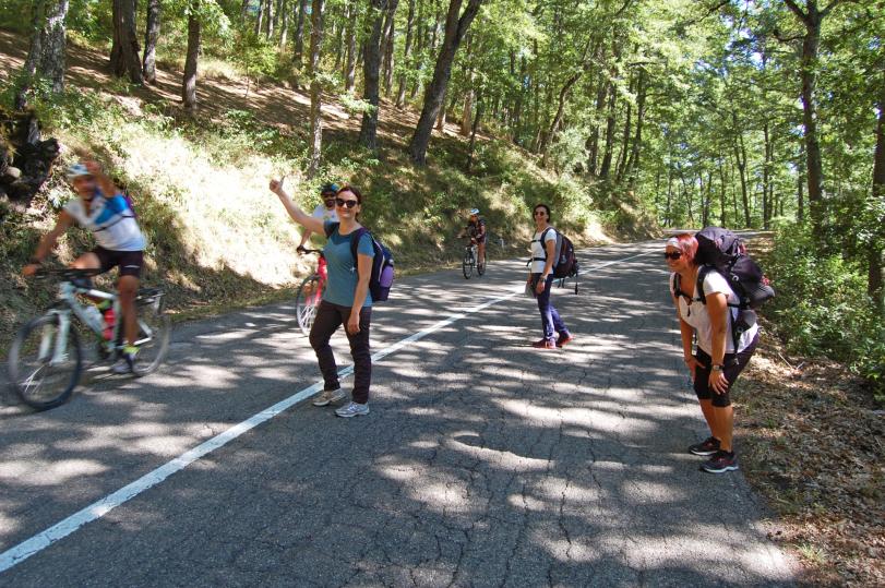 Vanni La Guardia e Patrizia Eramo avevano fatto un sopralluogo in auto per vedere dal vivo le strade prima di percorrerle a piedi; il tragitto era stato studiato, ma non sono mancate improvvisazioni: «A Cirigliano il sindaco ci ha indicato una scorciatoia per accorciare di 4 chilometri il cammino, e abbiamo attraversato un altopiano meraviglioso. Per strada non abbiamo incontrato gente, se non qualche ciclista nel parco di Gallipoli Cognato, ma l’accoglienza nei paesi è stata straordinaria: ci hanno fatto tante feste e donato prodotti tipici, tra cui l’eccellente pasta di Stigliano, ma il regalo più grande sono state le persone che abbiamo conosciuto». Come la 90enne Vincenza, a Cirigliano, due occhi magnetici e un viso straordinario, che ha aperto la porta ai viandanti come se fossero suoi nipoti. Oppure Giosuè Ferruzzi e la moglie, che li hanno accolti a pranzo con i loro figli, in una casa da cui si vede uno scorcio straordinario della Basilicata, finestra su Grottole e Montalbano Jonico.
