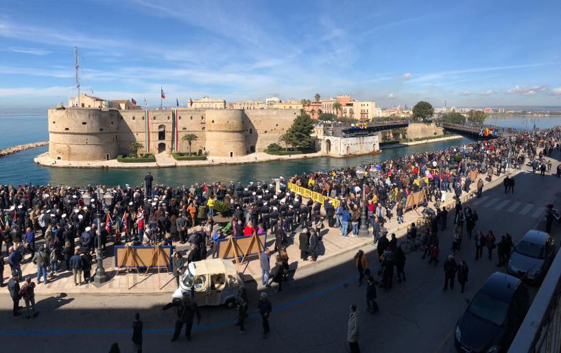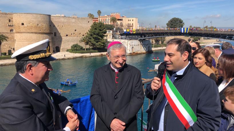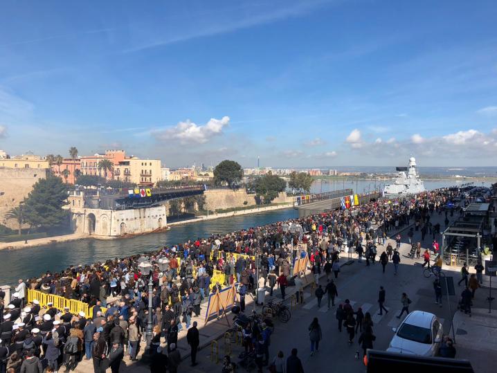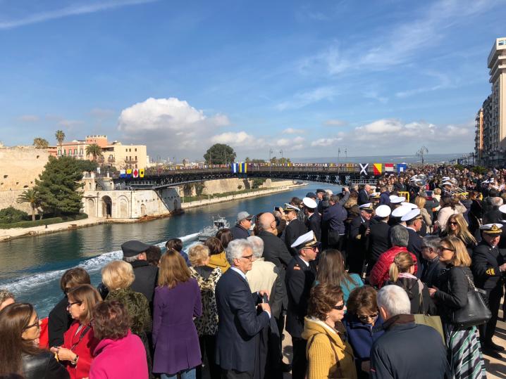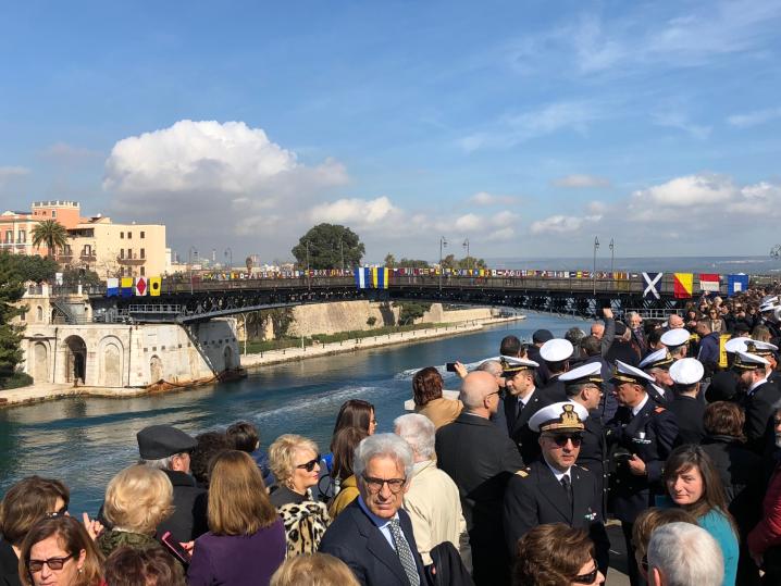 Oggi, sabato 10 marzo, ricorre il sessantesimo anniversario dell’inaugurazione del Ponte San Francesco di Paola di Taranto meglio, noto come Ponte Girevole. Per celebrare tale ricorrenza, che riguarda una infrastruttura diventata simbolo della città, la Marina Militare, attraverso il Comando Marittimo Sud, ha organizzato alcuni eventi celebrativi. Il nuovo ponte fu inaugurato dal presidente della Repubblica Giovanni Gronchi il 10 marzo 1958, e venne intitolato a San Francesco di Paola, protettore delle genti di mare. E' il secondo ponte girevole, dopo quello iniziale del 1887, progettato dalla Società Nazionale delle Officine Savignano, che costruì anche le parti elettromeccaniche mentre la parte relativa alle strutture in metallo fu realizzata dai Cantieri Navali Tosi di Taranto. In occasione dell'apertura straordinaria del Ponte Girevole a favore della cittadinanza, transito in entrata e in uscita, di una unità navale della Marina Militare (vedi il video). E dal castello Aragonese le salve di saluto. All'evento hanno assistito decine di migliaia di persone.