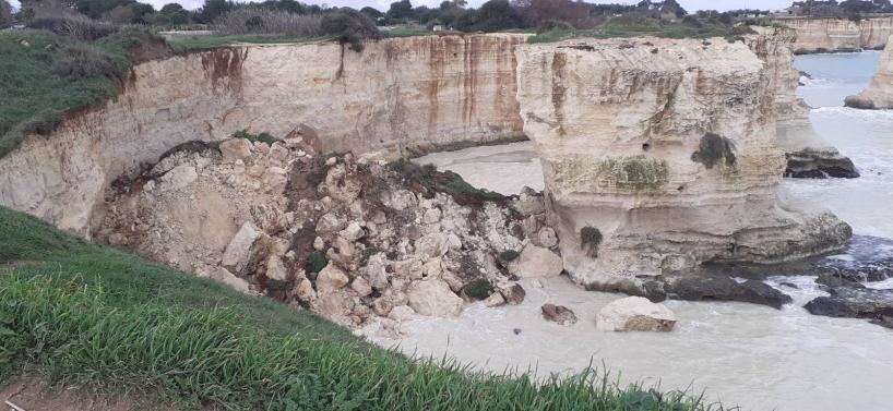 Il maltempo cancella uno dei tratti costieri più iconici del Salento: l’imponente l’arco dei faraglioni di Sant'Andrea, a Melendugno conosciuto anche come arco dell’amore, si è completamente sbriciolato in acqua. Il crollo sarebbe stato causato dalle mareggiate e dalle piogge violente di questi giorni, l’ultima nel corso della scorsa serata. Si tratta del danno più importante causato dall’erosione costiera al paesaggio del Salento. «E' un colpo al cuore durissimo - commenta il sindaco Maurizio Cisternino . Sparisce uno dei tratti turistici più famosi della nostra costa e dell’Italia intera. La Wind lo scelse tra i suoi primi spot. È una tragedia che sapevamo inevitabile ma non ci aspettavamo potesse accadere così presto».