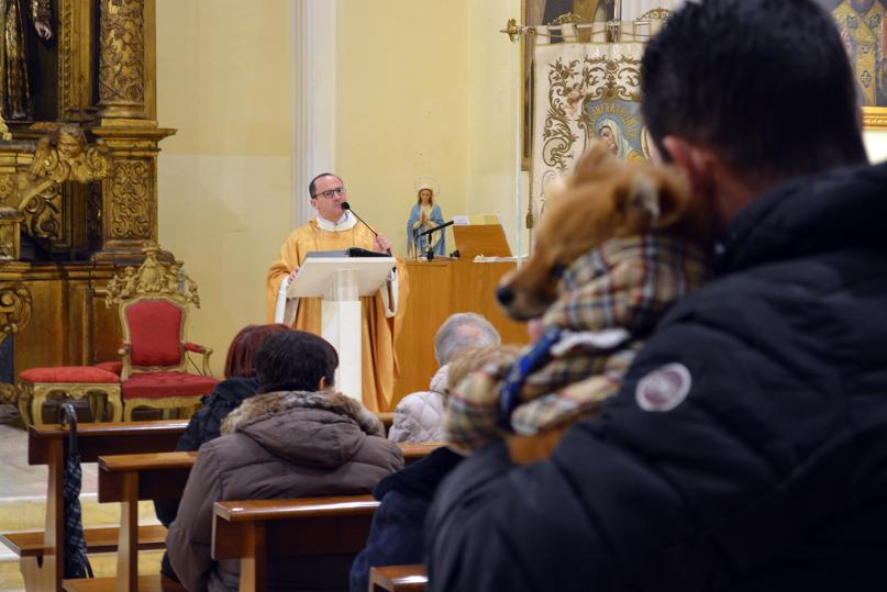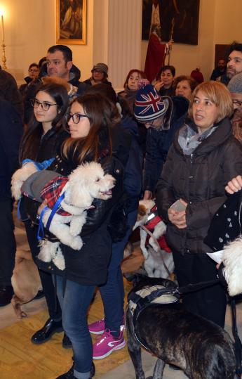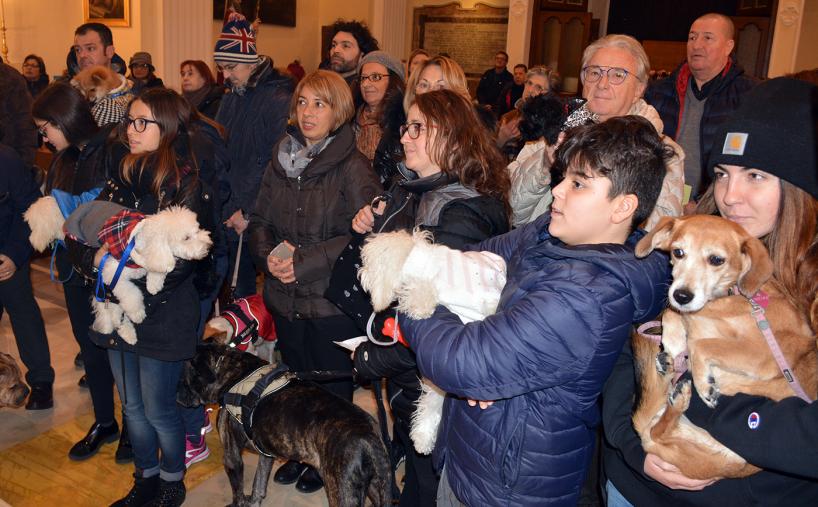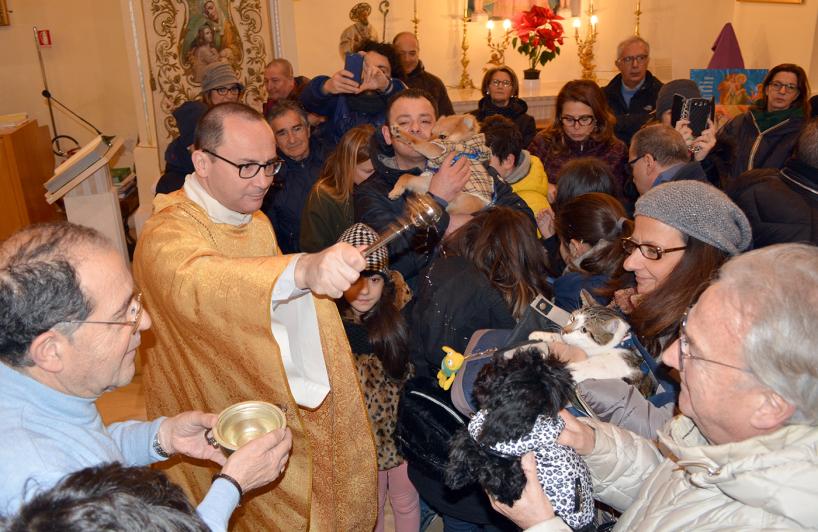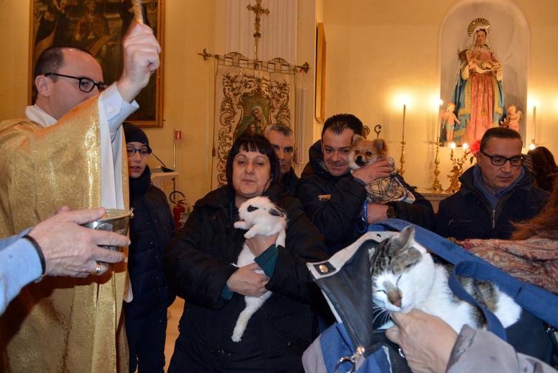 Un barboncino bianco di pochi mesi di vita infreddolito e avvolto in una tuta rosso scozzese, un gatto e un coniglio. Animali domestici tanto cari ai loro padroni molti dei quali ieri sera hanno sfidato freddo, vento e pioggia: non c’è festa di Sant’Antonio Abate a Bari senza la benedizione degli amici a quattro zampe.