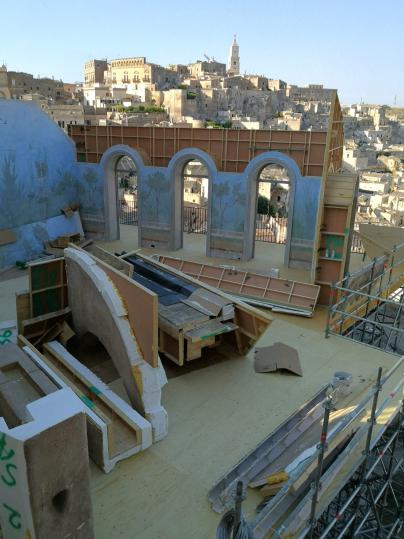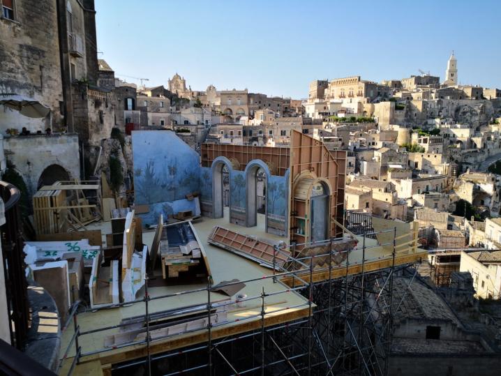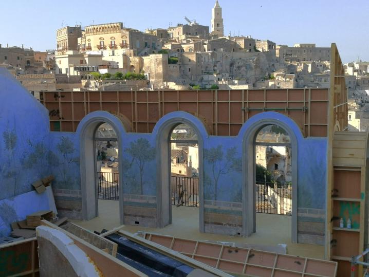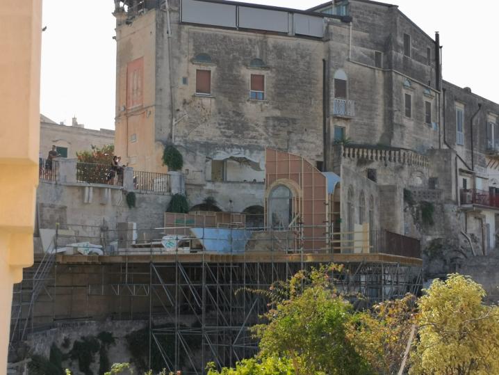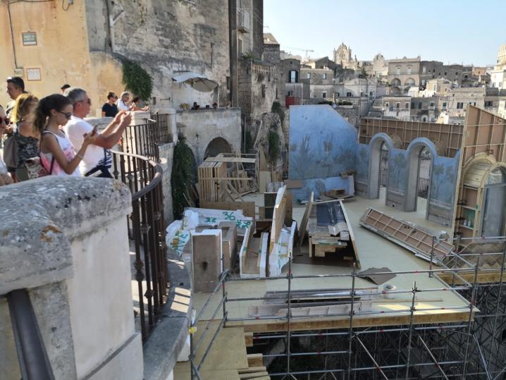 La struttura sta ormai prendendo una forma definitiva, al di sotto di una dei punti panoramici sugli antichi rioni di tufo. Il set ovviamente si è trasformato in un’attrazione nell’attrazione per i tanti turisti che affollano Matera in questi giorni. Sono tantissimi quelli che, dopo aver fotografato i Sassi, non rinunciano ad un selfie con lo sfondo della stanza dove si muoverà James Bond. A Matera sono numerosi gli altri set che la produzione ha deciso di realizzare in varie zone della città antica e nella Murgia: un altro luogo scelto per le riprese si trova a Gravina in Puglia (Bari).