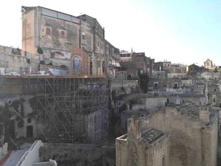 La struttura sta ormai prendendo una forma definitiva, al di sotto di una dei punti panoramici sugli antichi rioni di tufo: si tratta di una stanza d'albergo vista Sassi