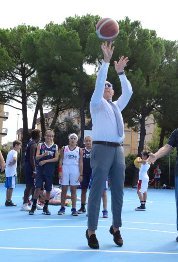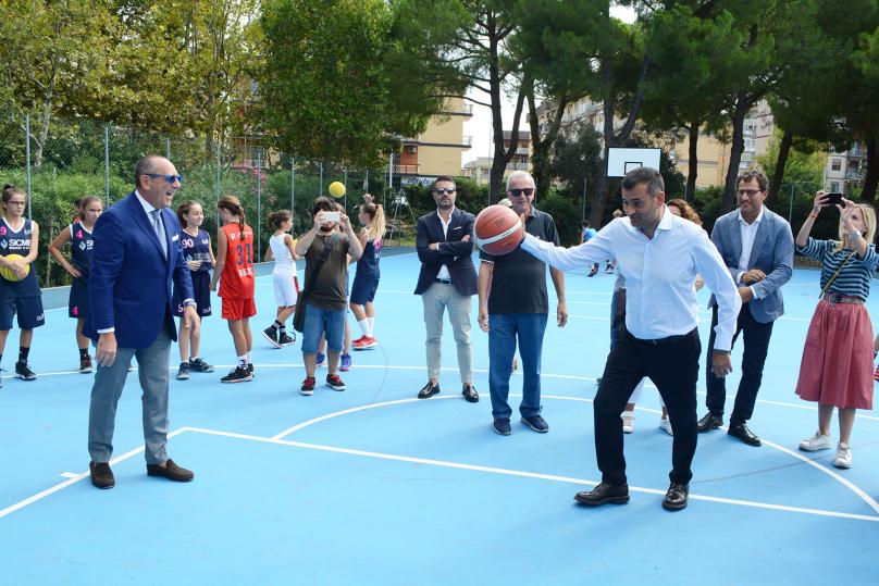 BARI - E’ stato inaugurato, alla presenza del presidente della Lega Basket Serie A, Egidio Bianchi e del sindaco di Bari, Antonio Decaro, il nuovo campo da gioco del Parco 2 Giugno, al termine di un cantiere che ha anche riqualificato l’esistente campo pallacanestro.