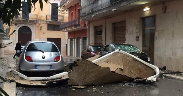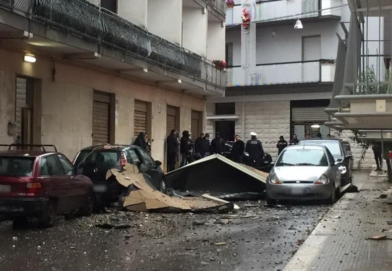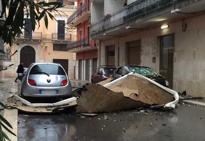 E a Corato (Ba) questa mattina in via Picca è stata sfiorata la tragedia: il vento ha sradicato la copertura di un terrazzo, che è finita al suolo. Non ci sono feriti.