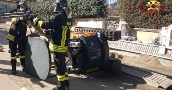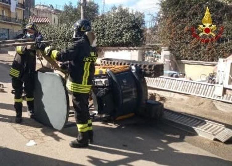 Un mini escavatore impegnato in uno scavo, durante le operazioni di carico su di un camion si è ribaltato su di un fianco e l'operatore che era alla guida della macchina è rimasto ferito, subito soccorso dal personale del 118 è stato trasportato in ospedale. I Vigili del fuoco in seguito ad una perdita di carburante hanno messo in sicurezza l'area e collaborato alla rimozione del mini escavatore, intervenendo con una autopompa ed un fuoristrada. Sul posto anche Carabinieri, Polizia Locale e 118.