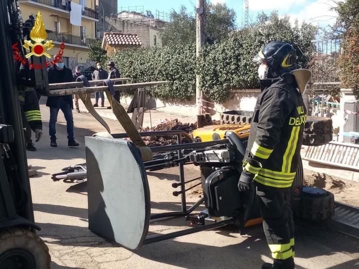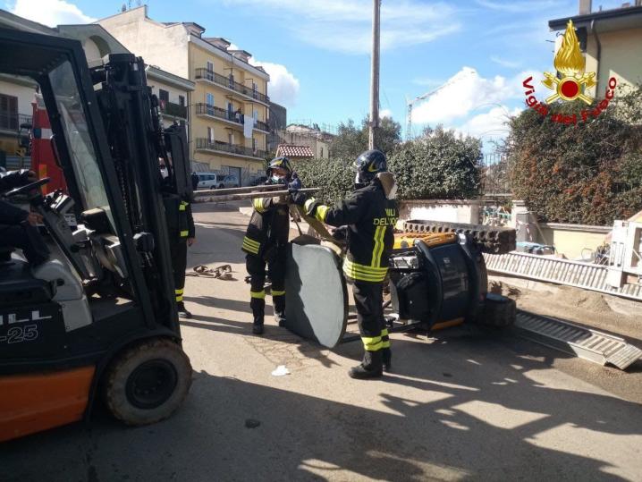 POTENZA - I Vigili del fuoco del Comando Provinciale di Potenza con il personale del distaccamento di Palazzo San Gervasio, sono intervenuti in via Kennedy per un incidente durante le operazioni di movimentazione di una macchina operatrice.