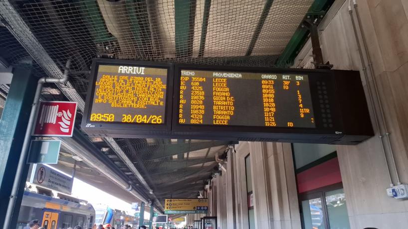 • IC 611 Bolzano (11:45) - Bari Centrale (23:16): il treno oggi termina la corsa a Pescara.