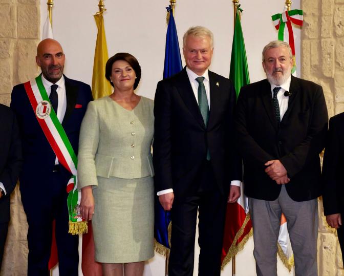 «La vostra presenza a Bari - ha detto Emiliano - è un segno tangibile della forza dei legami storici, culturali e spirituali che uniscono la Lituania e l’Italia. Bona Sforza, duchessa di Bari, regina di Polonia e granduchessa di Lituania - ha ricordato Emiliano - fu una figura straordinaria che seppe interpretare il suo ruolo non solo come consorte di un sovrano, ma come protagonista attiva della vita politica, culturale ed economica del suo tempo».