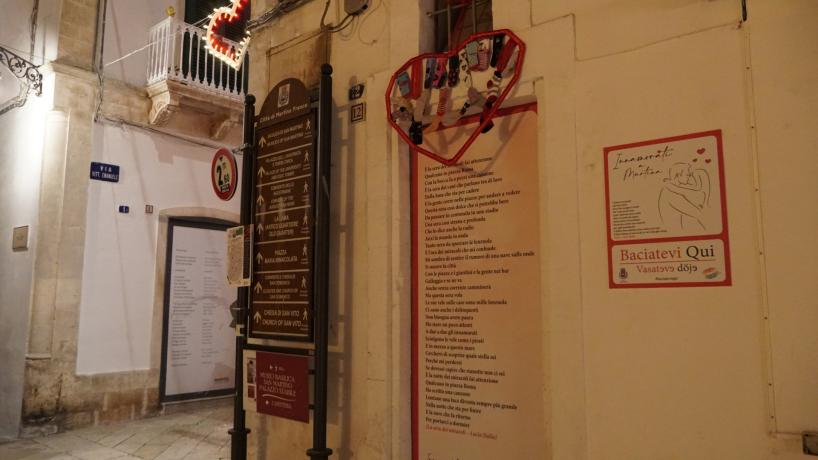 MARTINA FRANCA - A Martina Franca, fino al 6 marzo particolari luminarie e caratteristici kiss point sono stati allestiti per creare un’atmosfera romantica lungo un percorso su mappa che da corso Messapia, passando per piazza XX Settembre, raggiunge gli angoli più suggestivi del meraviglioso centro storico.