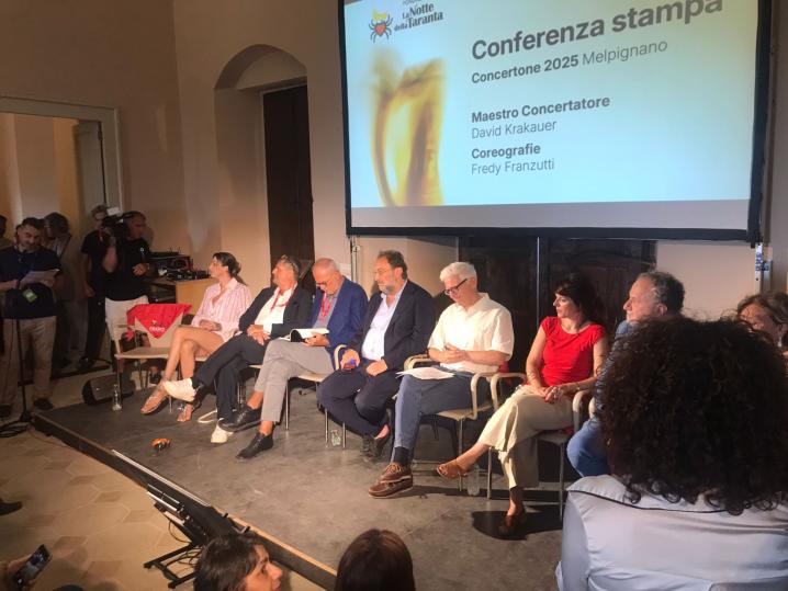 «Stiamo celebrando la gioia di essere insieme, tripudio di tutto ciò che vita non è. La musica e la danza sono il messaggio che parte dalla Taranta». Queste le parole del maestro concertatore David Krakauer in occasione della conferenza stampa di presentazione della Notte della Taranta 2025. Tutto è pronto per la 28esima edizione del Concertone, in programma domani sera, 23 agosto, a Melpignano, nel piazzale dell'ex Convento dei Padri Agostiniani, in diretta su Rai 3, Rai Italia, Rai Radio 2 e Rai Play e con la conduzione di Ema Stokholma.
