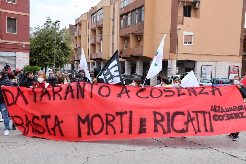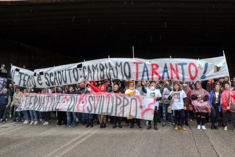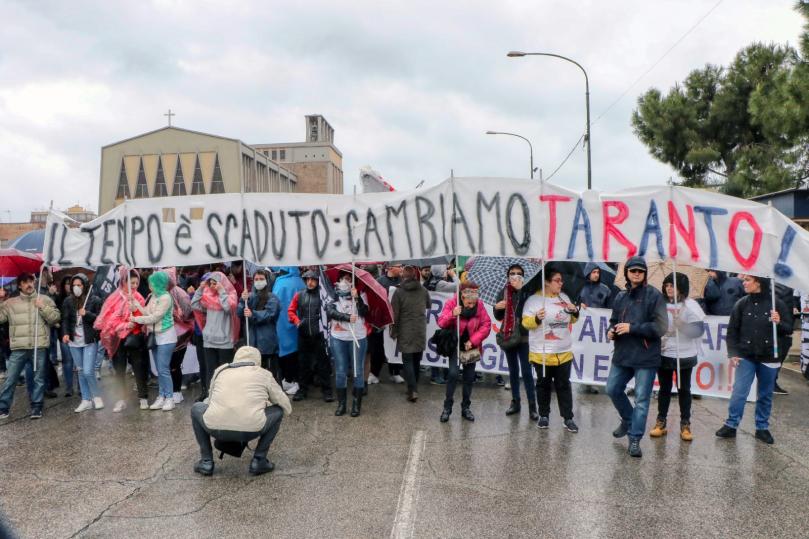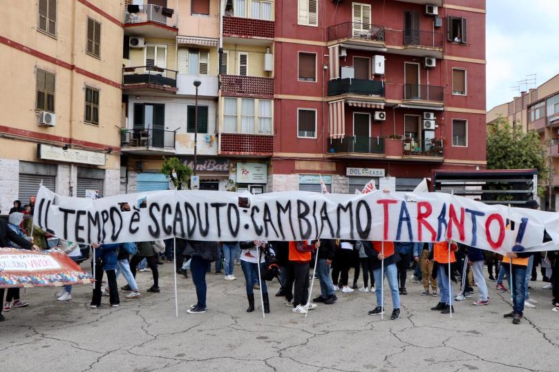 In testa al corteo i manifestanti mostrano lo striscione "Tempo scaduto: cambiamo Taranto». E poi altri: «Per lo Stato ammazzare i nostri figli non è reato, «Da Cosenza a Taranto basta morti e ricatti», «I bambini di Taranto vogliono vivere». Ci sono anche i genitori di bambini e ragazzi morti per malattie che ritengono connesse all’inquinamento. «Pretendiamo giustizia sociale - ha aggiunto un altro attivista - non solo per Taranto ma per tutti i territori che vengono massacrati quotidianamente e questo è il nostro benvenuto. Un benvenuto di lotta ai compagni. Insieme sfidiamo le sorti del destino, insieme decidiamo sulle nostre vite e riprendiamoci ciò che ci è stato sottratto».