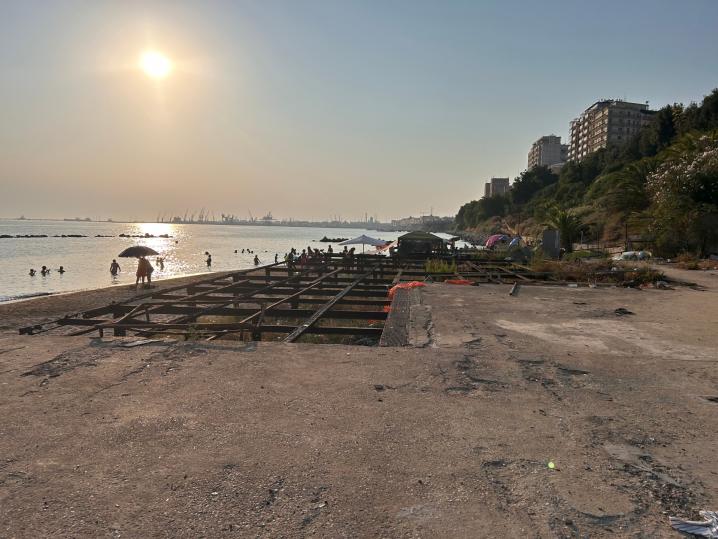 Oltrepassando il vecchio lido ci si trova in mezzo ai piloni di ferro, ormai arrugginiti, che un tempo reggevano la passerella che portava al mare e oggi dividono il degrado dalla spiaggetta...