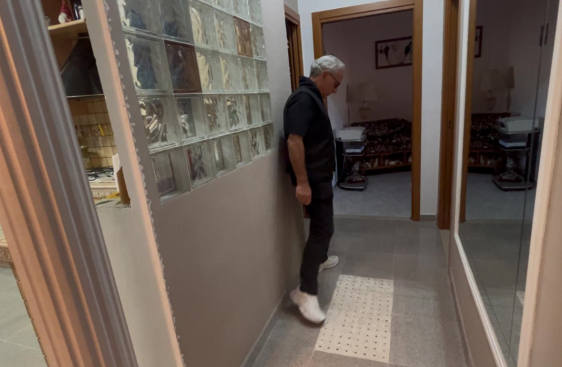 Arturo Camerino ha un buco nel pavimento nell’ingresso di casa che ha coperto con due mattonelle. Per accedere alle camere deve passare rasente al muro e vive in questa situazione da 10 anni. Lui è uno dei residenti delle case popolari della Salinella e racconta che, nonostante le mille chiamate, non è cambiato niente.