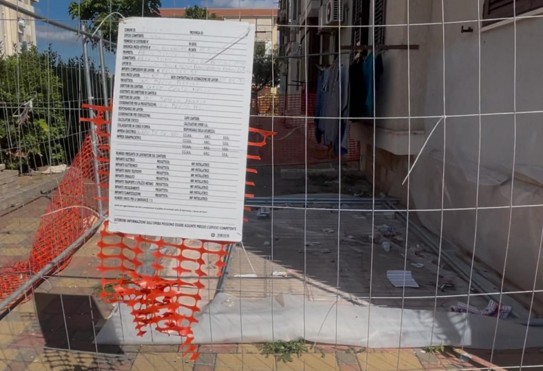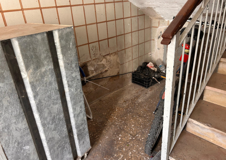 Katia Bellacicco abita poco distante. Sul suo edificio il numero civico è stato scritto con la bomboletta accanto al portone. A gennaio aveva raccontato alla Gazzetta che quasi 4 anni fa, per un lavoro alla fognatura dell’edificio accanto, era stato aperto lo sportello d’ispezione nel vano scale, mai richiuso, da cui passano topi, blatte e soprattutto un cattivo odore acre e persistente, che risale anche dagli scarichi dei sanitari e lavandini. La cisterna e la motopompa sono state spostate e nessuno le ha ancora rimesse a posto. I residenti sono preoccupati perché non possono chiudere il portone e non si sentono al sicuro. All’esterno, alle spalle del palazzo, un anno fa un altro sportello era stato rimosso, ma i lavori non sono mai terminati, il buco è stato coperto con una tavola di legno e sigillato con il cellophane.