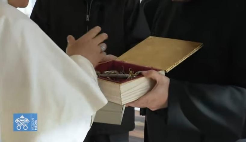 Il momento di massima commozione è scattato quando Papa Leone ha posato le sue mani sul prezioso cofanetto che custodiva le chiavi dei portali
