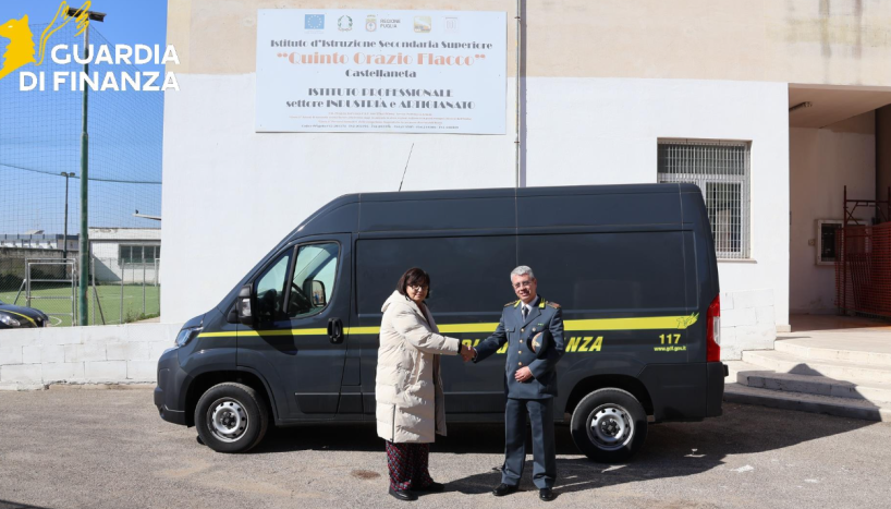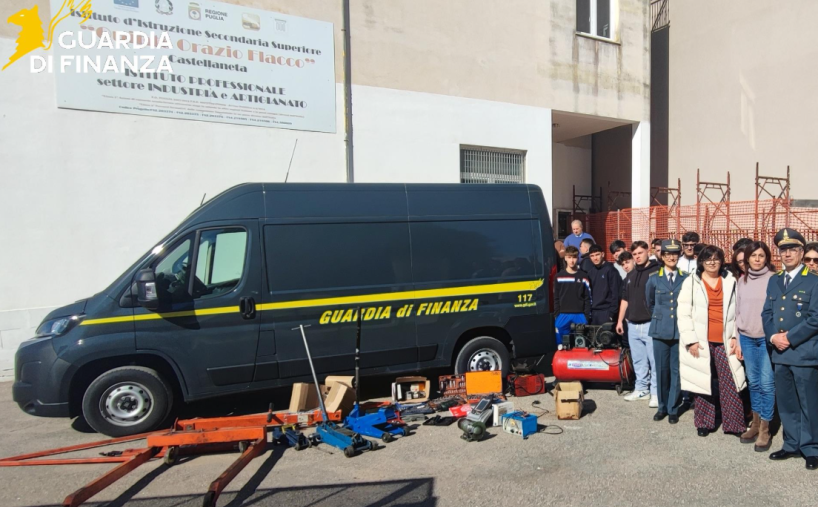 Stamattina i finanzieri della Tenenza di Castellaneta hanno devoluto all’istituto d’Istruzione Superiore «Quinto Orazio Flacco” di Castellaneta diverse attrezzature meccaniche professionali.