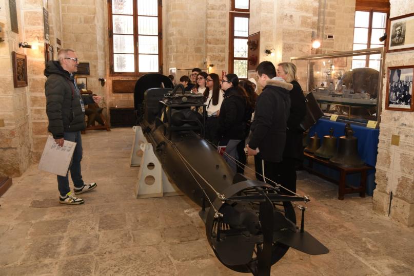 La prima tappa della visita si è svolta presso l’Arsenale Militare Marittimo di Taranto, cuore pulsante della tradizione industriale e navale della città. Qui i ragazzi hanno potuto toccare con mano la realtà della mostra storico-artigiana, un patrimonio prezioso in cui sono custodite le competenze, i saperi e le tradizioni delle maestranze che hanno reso grande lo stabilimento tarantino nel corso dei decenni. Un percorso che ha permesso agli studenti di comprendere l’importanza del lavoro, della professionalità e della dedizione che caratterizzano da sempre l’Arsenale. Successivamente, la visita è proseguita presso il Comando Flottiglia Sommergibili, dove i giovani hanno assistito a interessanti conferenze dedicate alla storia dei sommergibili e al ruolo strategico della Marina Militare nel contesto nazionale e internazionale. Un momento di approfondimento che ha offerto uno sguardo affascinante su una componente altamente specialistica e tecnologicamente avanzata delle Forze Armate.