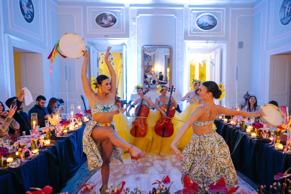 Tra colonne di marmo, affreschi e giardini profumati di gelsomino, i wedding planner hanno partecipato a un Gala Dinner in perfetto stile italiano, tra auto d’epoca a cura di Cupido Car Rental, luminarie firmate Maggico di Pietro Maggi e spettacoli dal vivo a cura di Retroscena.
