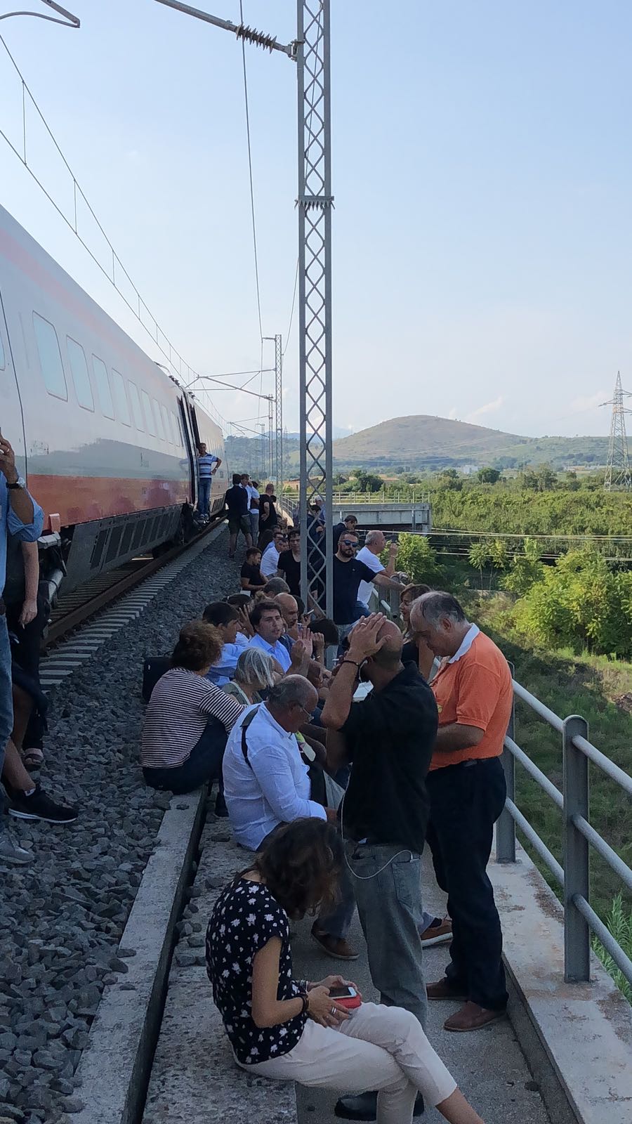 Ecco le foto dei viaggiatori stanchi e accaldati, bloccati nelle campagne di Caserta