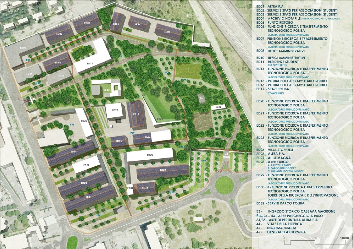L’iniziativa si inserisce nel più ampio piano riqualificazione dell’ex struttura militare e di rigenerazione urbana promosso da Regione Puglia e Politecnico di Bari, in collaborazione con l’Agenzia del Demanio, l’Adisu Puglia, il Comune di Bari , con il supporto del Ministero dell’Università e della Ricerca. Oltre alle residenze per gli studenti, il Parco ospiterà spazi per la didattica e la ricerca, gestiti dal Politecnico di Bari, e uffici per la Pubblica Amministrazione, con «un duplice beneficio: ridurre le locazioni passive e promuovere la condivisione di spazi pubblici riqualificati».