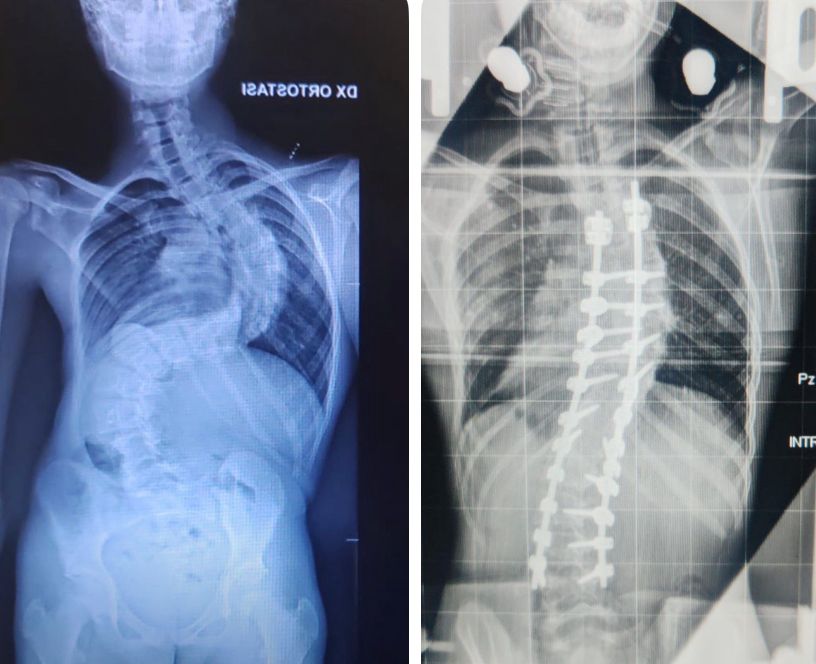 “Francesco - spiega il dottor Piazzolla - era affetto da una forma di scoliosi aggressiva, con un peggioramento impressionante: oltre 30 gradi in appena tre mesi. Una progressione rapidissima che ha imposto una preparazione preoperatoria complessa e meticolosa. Per più di un mese il ragazzo ha vissuto stabilmente in ospedale, sottoposto a trazione continua con un sistema speciale, l’halo, un dispositivo che consente di preparare progressivamente la colonna vertebrale a un intervento tanto delicato grazie al quale siamo riusciti a ridurre la scoliosi a 45 gradi”.