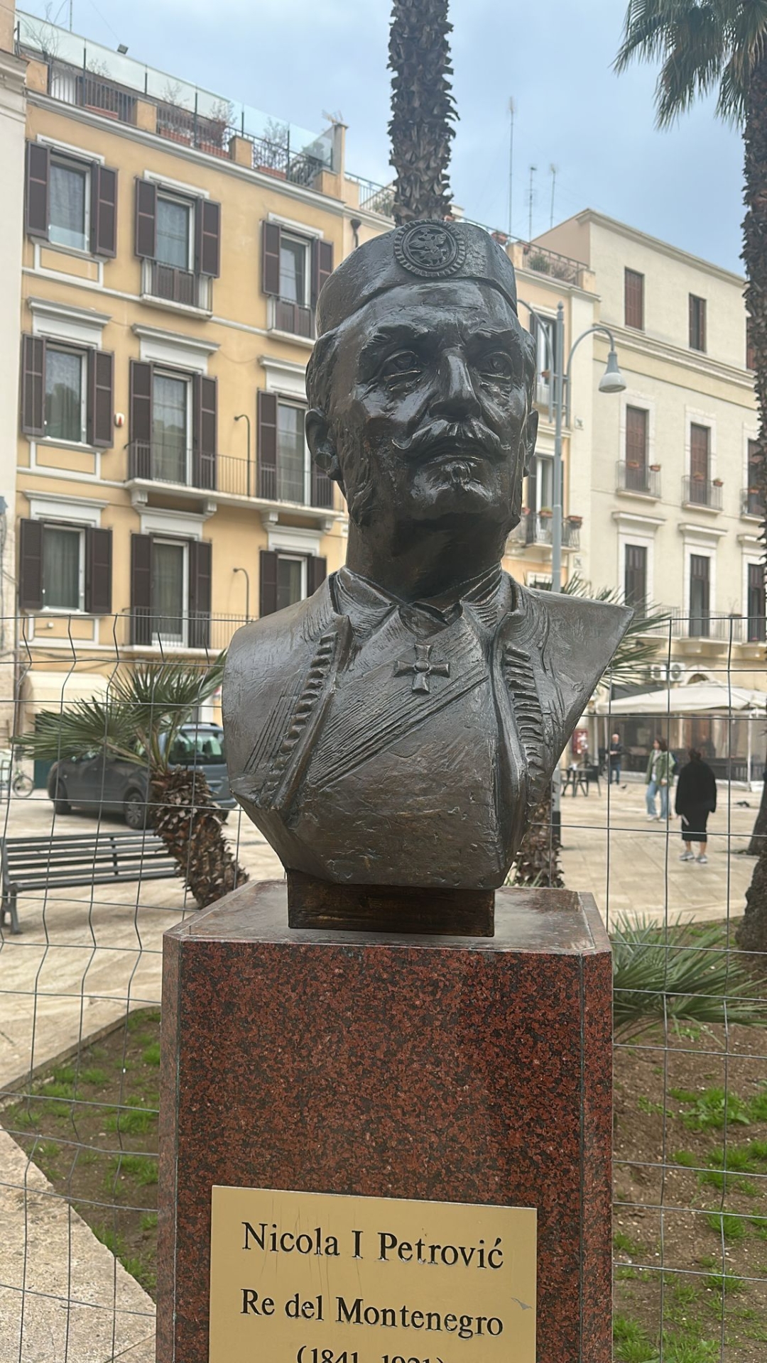 È stato ripristinato in corso Vittorio Emanuele II il busto di Nicola I Mirkov Petrović, re e fondatore del Regno del Montenegro, dopo che una parte del basamento si era danneggiata causando l’inclinazione del monumento. Lo scorso 7 febbraio il sindaco Vito Leccese aveva sollecitato interventi urgenti per evitare rischi per l’incolumità pubblica.