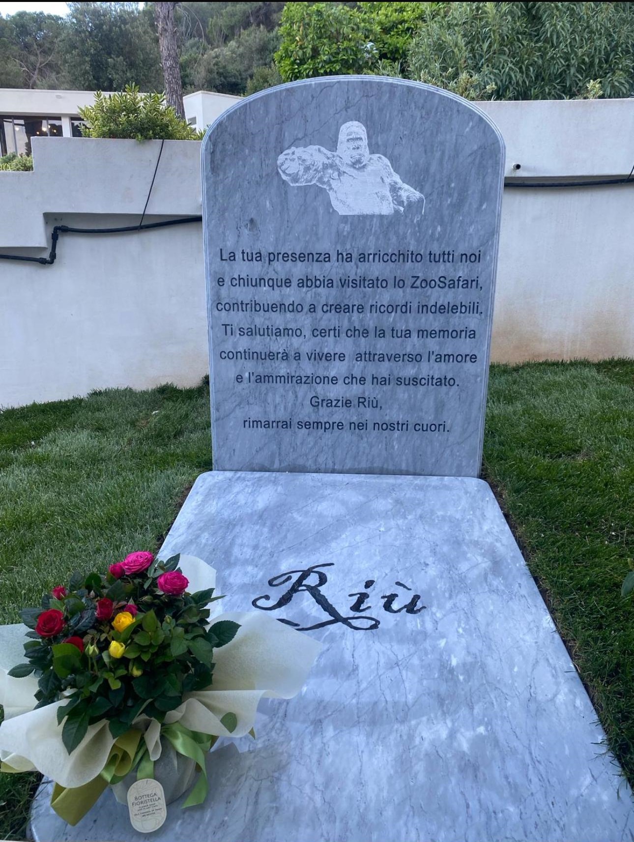 E’ forse crudo raccontare i dettagli ma ne vale la pena per far capire il nostro vissuto nella frenesia angosciante di quei giorni e di quelle settimane: il dover raccogliere e congelare la salma nella cella frigo dedicata alle carcasse animali, il dover quanto prima informare sia per le vie brevi che ufficialmente tutte le Autorità competenti che ritenevamo doveroso informare (il Ministero Ambiente, il Ministero Salute, il Ministero Politiche Forestali, i Carabinieri Forestali CITES Centrali e Regionali, i Servizi Veterinari ASL Area A ed Area C di Brindisi, l’Istituto Zooprofilattico Sperimentale di Foggia, ecc. ecc.), il dover organizzare date e modalità dell’indispensabile autopsia presso quest’ultimo Istituto, il dover organizzare il trasporto di Riù fino a Foggia con mezzo autorizzato, il dover (e voler) coinvolgere per l’occasione anche Medici Umani esperti in Medicina Legale ed Anatomia Patologica insieme ad una cinquantina di veterinari esperti che hanno effettuato sul posto o hanno seguito il tutto via Web le necessarie operazioni di sezionamento e campionamento dei vari organi, e poi il rientro di Riù (o di quello che ne restava) per essere cremato presso un Centro Autorizzato della zona, la raccolta delle sue ceneri in un’urna, la realizzazione per lui di una grande tomba marmorea con lapide commemorativa, visibile da subito anche al pubblico e posta presso la nostra Chiesetta proprio di fianco agli Uffici Direzionali, per sentirlo comunque ancora presente, vivo e vicino. I referti ricevuti da parte dell’Istituto Zooprofilattico Sperimentale, ottenuti dopo alcuni mesi, hanno evidenziato in primis macroscopicamente uno scompenso con conseguente arresto cardiaco acuto legato all’età, anche perché ancora oggi non ci sono altre evidenze importanti sui campioni sezionati (alcuni dei quali ancora in fase di studio). Come già accennato, quasi beffardamente la situazione diplomatico/burocratica sbloccatasi proprio poco prima che Riù morisse ci ha permesso di ricevere dall’E.E.P. nel marzo 2024 i nostri nuovi 3 gorilla (“Tamani”, una prolifica femmina di 31 anni nata in Olanda e proveniente dal Parco Zoologico di Rotterdam, con 2 dei suoi figli, la femmina “Tonka” di 12 anni ed il giovane maschio “Thabo” di 9 anni d’età), che Riù per un soffio di tempo non è riuscito a conoscere ed incontrare. E’ facile ergersi a paladini di una battaglia purtroppo scientificamente improponibile ed insostenibile per il ritorno di Riù alla libertà ed alla sua Africa o ad un inesistente “santuario” perché quasi nessun esemplare cresciuto per decenni in ambiente controllato sopravviverebbe in natura. E tutti noi concordiamo, siamo consci e siamo certi che sarebbe stato assolutamente giusto ed opportuno lasciare quei cuccioli nel loro habitat originario e che sia stato un sacrilegio toglierli dalle braccia dei loro genitori, ma all’epoca (parliamo di oltre 50 anni fa) tutto purtroppo era possibile ed oltretutto in maniera del tutto legale ed autorizzata dagli Enti competenti.
